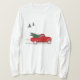 Camiseta branca e comprida para mulheres. Natal, Pequeno Caminhão Vermelho com Árvore de Natal.