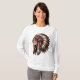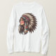 Esta camiseta apresenta uma linda moça nativa americana vestindo uma morada de penas tradicional. Os detalhes intrincados e as cores vibrantes da design fazem com que uma peça de arte 'vestível' impressionante e atraente. Mostrando a riqueza cultural e a beleza natural das pessoas Nativas Americanas, esta camiseta é uma na moda para celebrar e honrar as tradições do indígenas.