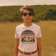 Personalize suas próprias camisetas de crianças para viajar na estrada para embarcar em uma jornada através da natureza neste verão ou outono. Personalize com o seu sobrenome debaixo da floresta verde de árvores e pôr do sol da montanha escura para manter férias legais para o seu grupo ao ar livre.