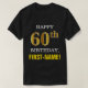 Esta simples design de camisa preta, tema de aniversário, apresenta um desejo de aniversário quente como "FELIZ 60º ANIVERSÁRIO, PRIMEIRO NOME!" na frente, em texto ousado. O número de aniversário tem uma aparência falsa e imitada de cor dourada. O nome na frente pode ser personalizado. Uma camisa de aniversário como esta pode ser divertida de vestir numa festa de aniversário que está sendo realizada para alguém que está comemorando seu sexagésimo aniversário. [~Z0000318]