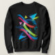 Neon brush strokes and glowing geometric shapes dominate the design, with a spectral face shadow barely visible among the glowing reflections—evoking a city at night.