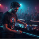 The artwork utilizes a dramatic dual-lighting effect, contrasting deep "cyber blue" shadows with glowing amber highlights, giving it a vibrant, three-dimensional look. Whether you’re a music producer, a late-night gamer, or a fan of the synthwave aesthetic, this tee captures a vibe that is both edgy and sophisticated.