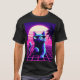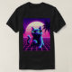This t-shirt design features a central vaporwave cat on a neon grid with a retro 80s sunset and palms, perfect for fans of synthwave, Miami vice colors, and tumblr aesthetic streetwear.