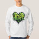 Sinta o pulso com o nosso "Néon Heartbeat". Esta design apresenta a palavra "HEART" corajosamente estilizada em grafite com limão vibrante verde e preto estrelado, colocada contra um fundo cardíaco verde sólido. É uma peça eletrificante e atraente que irradia energia e paixão. Vista seu coração na manga, amplificado com talento urbano.