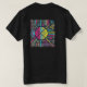 design de t-shirt do estilo vintage com um ritmo neon com raios neon em camadas, linhas limpas e uma vintage, juntamente com a frase "NEON RHYTHM".