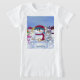 Neves bonitos e caprichosos estão se resfriando juntos enquanto se mantêm bonitos e frios em um dia de inverno. Todos os homens de neve estão vestindo chapéus e lenços coloridos e criativos. Personalize esta camiseta branca de boneco de neve adicionando seu próprio texto ou excluindo-a para deixá-la vazio. Baseado em uma peça de arte original por © One Artsy Momma.
