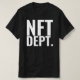 Você Design, Vender, Coletar ou Trocar NFTs? Então, bem-vindo ao DEPARTAMENTO NFT. Entre no futuro da moda com o NFT DEPT. tee — uma peça de declaração ousada que liga a inovação digital e a cultura de roupa de rua. Esta camisa é mais do que apenas roupa; é um emblema vestível da revolução NFT, projetada para criadores, colecionadores e entusiastas criptográficos que querem mostrar sua paixão por tokens não fungíveis no estilo.