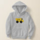 Brincadeira, personalizada, camisola de capuz amarelo com capuz que mostra o nome do seu filho no lado do caminhão. Pode ser encomendado em vários tamanhos e cores. Mostrado é o nome editável, Noah. Projetado por 369MyName.