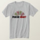 Camisa com tipografia noturna de pôquer. Um conjunto de 4 cartas com silhuetas masculinas e femininas.