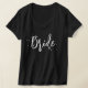Este design apresenta noiva casamento preto caligrafia script, chique moderno elegante simples, um mínimo pontos minimalista divertido, presente de chá de lingerie despedida de solteira, ótimo para celebração de evento de fim de semana de despedida de solteira, para ela feminino senhoras meninas, tipografia bonita e elegante, minimal clássico limpo simplista, simples gráfico novidade lembrança, para a camisa da noiva