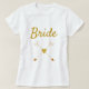 Um adorável design de ouro e branco, esta camisa apresenta "Noiva" em Dourada letra cursiva. Debaixo da tipografia, tenho setas cardíacas a intersetar. Faça seu pedido hoje mesmo!