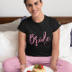 Este design apresenta noiva casamento rosa caligrafia script, chique moderno elegante simples, um mínimo minimalista pontos divertidos, presente para chá de lingerie despedida de solteira, ótimo para evento de celebração de fim de semana de despedida de solteira, para ela feminino senhoras meninas, tipografia fofo trendy elegante, minimal clássico limpo simplista, simples gráfico novidade lembrança, para a camisa da noiva