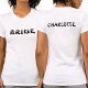 Esta camiseta branca para festa de solteira é dupla face, apresentando Noiva na frente e o nome da noiva no verso. Para editar o texto, clique no botão personalizar. Lembre-se de editar ambos os lados.