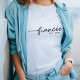 Noiva Elegante Tipografia Personalizada Camisa de Noivado de Data. Camisa na moda minimalista da Fiancée com data estabelecida e personalizada oferta de anúncio de noivado para a noiva a ser