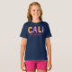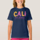 Flores gráficas e estrelas divertidas, em camiseta altimétrica amarela, rosa e roxa de rabisco. Ideal para um presente personalizado para uma garota chamada Cali, vem com um nome pesquisado que significa Cali, o mais bonito. Brilhante e deslumbrante como estrelas brilhantes ou você pode personalizar o texto com seu próprio significado ou o que o nome significa para você, se necessário. Ideal como presente especial de aniversário ou celebração. Se precisar de ajuda com seu próprio nome personalizado, entre em contato comigo. Arte gráfica amarela, rosa, roxa e branca, criada exclusivamente por Sarah Trett para www.mylittleeden.com e nome