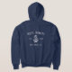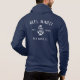 Mostre seu status de capitão (ou primeiro-oficial) com este design personalizado legal. O estilo náutico clássico apresenta o nome do barco, o ano estabelecido e o registro do navio em letras brancas rústicas com uma ilustração de âncora. Design aparece na área do bolso frontal e na parte traseira.