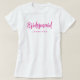 Camiseta Básica Personalizada de Nome de Dama de Honra de Despedida de Solteira Cor-de-Rosa e Branco Feminina com Modelo de Roupa de Vestuário de Adicionar Imagem Texto Aqui.