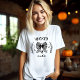 A Camiseta Girly de Mulheres com vibrações do Halloween em coquete feminina apresentava um arco de rendas pretas giro, uma silhueta de bruxas e um quadro de plantas ricos em preto e branco. Personalize facilmente o texto. Kate Eden Art.