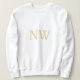 Nome do monograma branco e ouro rubrica camisa de suor feminina personalizável. Use "editar usando a ferramenta design" para ajustar a posição do texto.