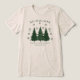 Uma vintage inspirou uma design de camiseta de Natal verde com pinheiros e flocos de neve. Personalize com seu nome de família, ano e local. Consiga camisas da família e comece uma tradição de férias.