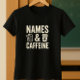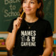 Camiseta Nomes & Caffeine Shirt; Sala de aula engraçada