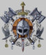 Este trabalho de arte do Norse Viking Warrior Armory apresenta um antigo martelo guerreiro escandinavo viking, espada, escudo, corridas nórdicas e corvo de mitologia nórdica.