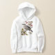 This image depicts a cartoon Northern Mockingbird perched in a tree of apple blossom. The cut out image allows the delicate pink of the flowers to stand out against a solid background. A whimsical artwork combining animal and plant into one unique composition.
