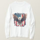 Mostre seu orgulho americano com esta design ousada e patriótica apresentando uma águia careca voando contra um pano de fundo da bandeira americana.