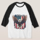 Mostre seu orgulho americano com esta design ousada e patriótica apresentando uma águia careca voando contra um pano de fundo da bandeira americana.