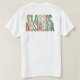 O design de revelação apresenta a frase "Nostalgia clássica" em um roteiro vibrante e multicolorido. As letras divertidas e caprichosas se dobram e se voltam, adicionando um toque de diversão ao olhar inspirado na safra.