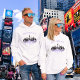 A linha do horizonte da Nova Iorque é apresentada neste capuz branco. Um design giro roxo e lilás com fonte ousada. Design contém IA.