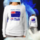 A camiseta de manga longa mostra a bandeira neozelandesa com as palavras NOVA ZELÂNDIA nas cores da bandeira Kiwi. Acima da bandeira está um lugar para colocar um nome em letras azuis e adicionar um toque personalizado. Ou, crie um presente adicionando o nome de outra pessoa. Você pode alterar a fonte e/ou a cor do nome usando a opção "editar design". Pode ser a coisa para a reunião da família do neozelandês.