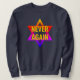 Marinho NUNCA MAIS O Holocausto Lembre-se de uma camisola que mostra a estrela multicolorida de David e a redação amarela NUNCA MAIS. Mostre seu apoio durante Yom HaShoah e Holocausto Memorial. Itens correspondentes disponíveis.