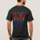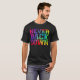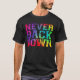 A afirmação ousada "Nunca recuar" é esmagada na frente desta t-shirt num gradiente de arco-íris vibrante. Cada letra se rompe com uma cor diferente, criando um design dinâmico e atraente.