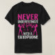 Nunca subestime um L com um saXOPHONE .Funny, Family, Esporte, Música, Educação, Animais, Empregos, Nomes, Gráfico, Camisa de Camisetas, Dizimentos Engraçados, Vintage, Feriados, Presentes, Festas, souvenir, orgulho, férias, roupa de roupa de roupa para Dia de os pais, Natal, Aniversário, Dia de as mães, Aniversário, Graduação, Halloween, 4 de julho, aposentadoria, Rua. Dia de Patrick, Ação de Graças.