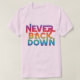 Mande o seu lutador interno com a t-shirt "Nunca Mais Para Baixo"! Este design apresenta a frase poderosa em uma exibição impressionante de várias cores, cada letra enterrando com energia. Esta camisa é uma peça para qualquer um que encarna a determinação inabalável e um espírito incessante.
