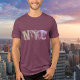 t-shirt gráfica com Nova Iorque (NYC). O gráfico NYC está na frente desta t-shirt. Multicores. Personalize o verso com seu nome ou texto desejado. Camiseta excelente para homens, mulheres e crianças. Use a modelo para criar sua própria camiseta gráfica NYC.