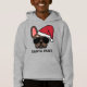 Junte-se à diversão festiva com este lindo capuz de Natal. A design apresenta um buldogue francês castanho e bronzeado vestindo um chapéu de Papai Noel vermelho e óculos de sol de aviador com a menção "Papais noeis - patas" impressa por baixo.
