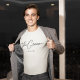 Esta camiseta simples e chica do noivo mostra seu nome debaixo da elegante tipografia negra lendo O noivo. Personalize essas camisetas elegantes e modernas para seus eventos de casamento ou despedida de solteiro.