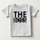 A camisa de bebê preta de texto em negrito do chefe. presente de excelente para um chá de fraldas.