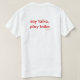 A camisa do showa do kuchi de Tatsumaki Taiko com o showa do kuchi na parte dianteira e "diz o taiko, taiko do jogo" nos olhares da parte traseira grandes em t-shirt da obscuridade ou da luz.