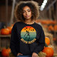 "Faça uma declaração neste Halloween com nossa camisa 'Nunca Melhor', onde um esqueleto espiritado dança contra um pôr do sol nostálgico. A cena incrivelmente bela é completada por um enxame de morcegos ao fundo, criando uma atmosfera que é simultaneamente estranha e encantadora. Não perca a chance de mostrar seu espírito de Halloween com essa design."