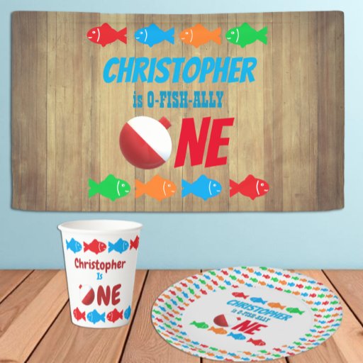 Uma pesca colorida temeu o primeiro aniversário para ajudar a celebrar 'O'Fish-Ally One'. Pop de peixes vermelhos, verdes, laranja e azuis