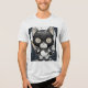 Uma t-shirt com um design de gato zangado poderia apresentar um felino com aspecto feroz, com olhos afiados e estreitos, pele de pé na ponta, e talvez dentes ou garras queimados por efeito dramático. A trabalho de arte pode incluir linhas ousadas, dinâmicas e cores intensas como vermelhos ferozes, cinzentos escuros ou amarelos elétricos para enfatizar a raiva do gato. O fundo poderia ser mínimo, permitindo que o gato se destacasse, ou poderia incluir elementos estilizados como marcas de garra, objetos estilhaçados, ou uma aura brilhando para melhorar o humor dramático. Esta camisa apelaria aos fãs de gráficos ousados e expressivos e àqueles que amam gatos com um pouco de atitude.