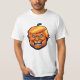 Grande cabeça laranja de Donald Trump personificando uma abóbora. Isso é assustador.