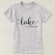 Camiseta com "O Lago é o Meu Lugar Feliz" em um estilo tipográfico moderno.