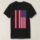 Um design patriótico ousado com um pano de fundo vertical de bandeira americana. Sobreposta na bandeira está uma faixa vertical preta destacada que contém o texto angustiado e impactante "MELHOR PAI NUNCA" em vermelho vibrante. Esta design é perfeita para celebrar pais com um forte sentimento de orgulho americano.