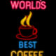 Bebidas de café noturnas tardias verão esses sinais de neon nas janelas de jantares e compres de café. Isto faz um presente de excelente para o amante do café.