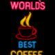 Bebidas de café noturnas tardias verão esses sinais de neon nas janelas de jantares e compres de café. Isto faz um presente de excelente para o amante do café.