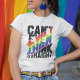 Uma camiseta bonita e colorida que apresenta uma citação autoirônica do orgulho LGBTQ em cores pretas e arco-íris, que diz "Não consigo nem pensar hetero". Com esta divertida camiseta de conscientização para o orgulho gay, você pode mostrar ao mundo que você é um orgulhoso membro da comunidade LGBTQ.